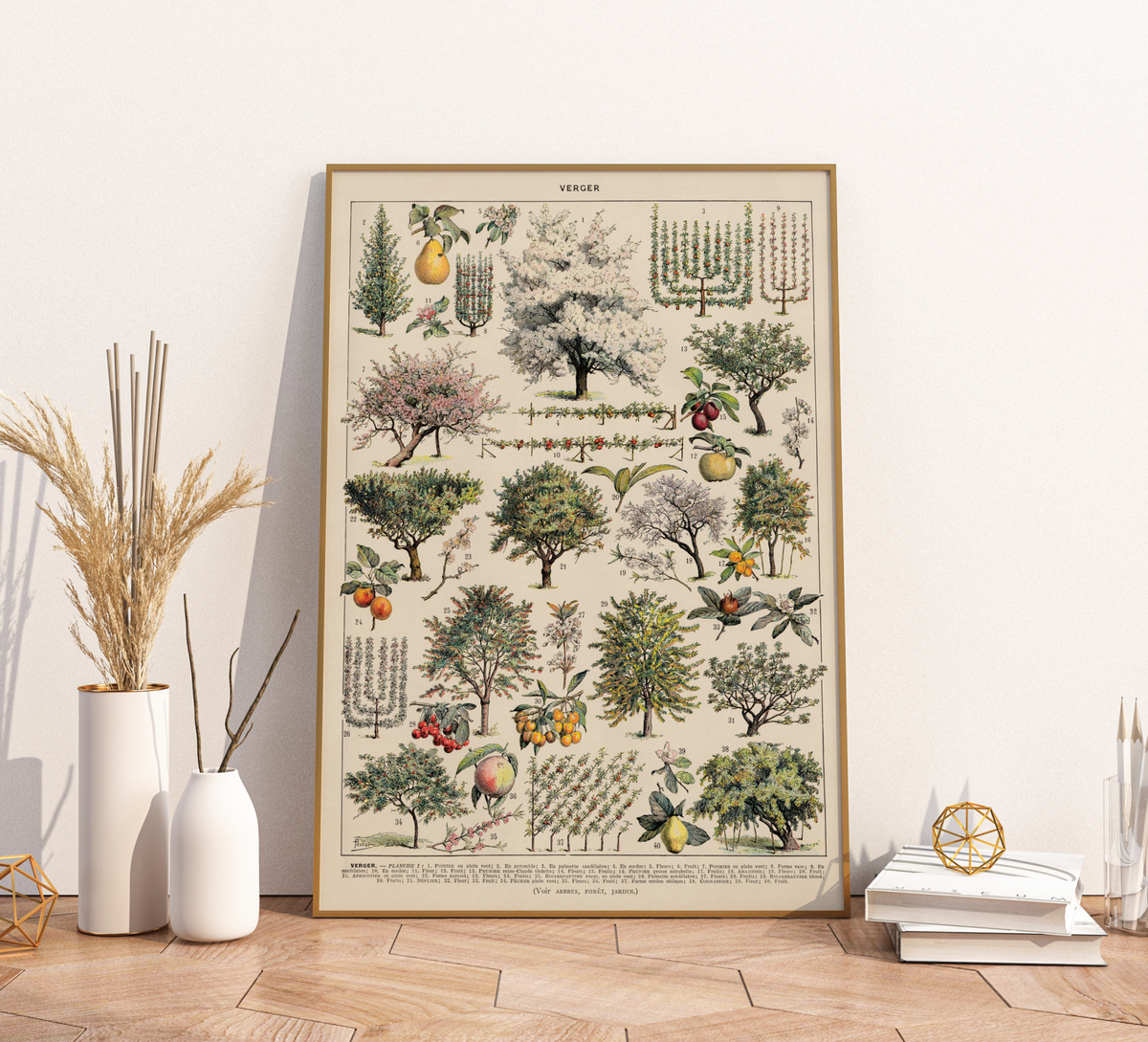 Bringe botanische Eleganz in dein Zuhause mit diesem hochwertigen Vintage-Poster „Obstbäume“ von Adolphe Millot. Das detailreiche Kunstwerk zeigt eine Vielzahl klassischer Obstbaumarten – von Apfel- und Birnbäumen bis hin zu exotischeren Sorten – in einem charmanten, historischen Illustrationsstil.